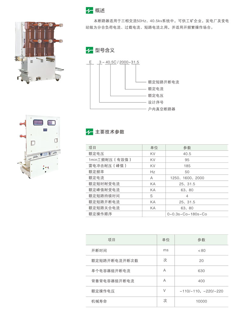 E3-40.52000-31.5型户内高压真空断路器