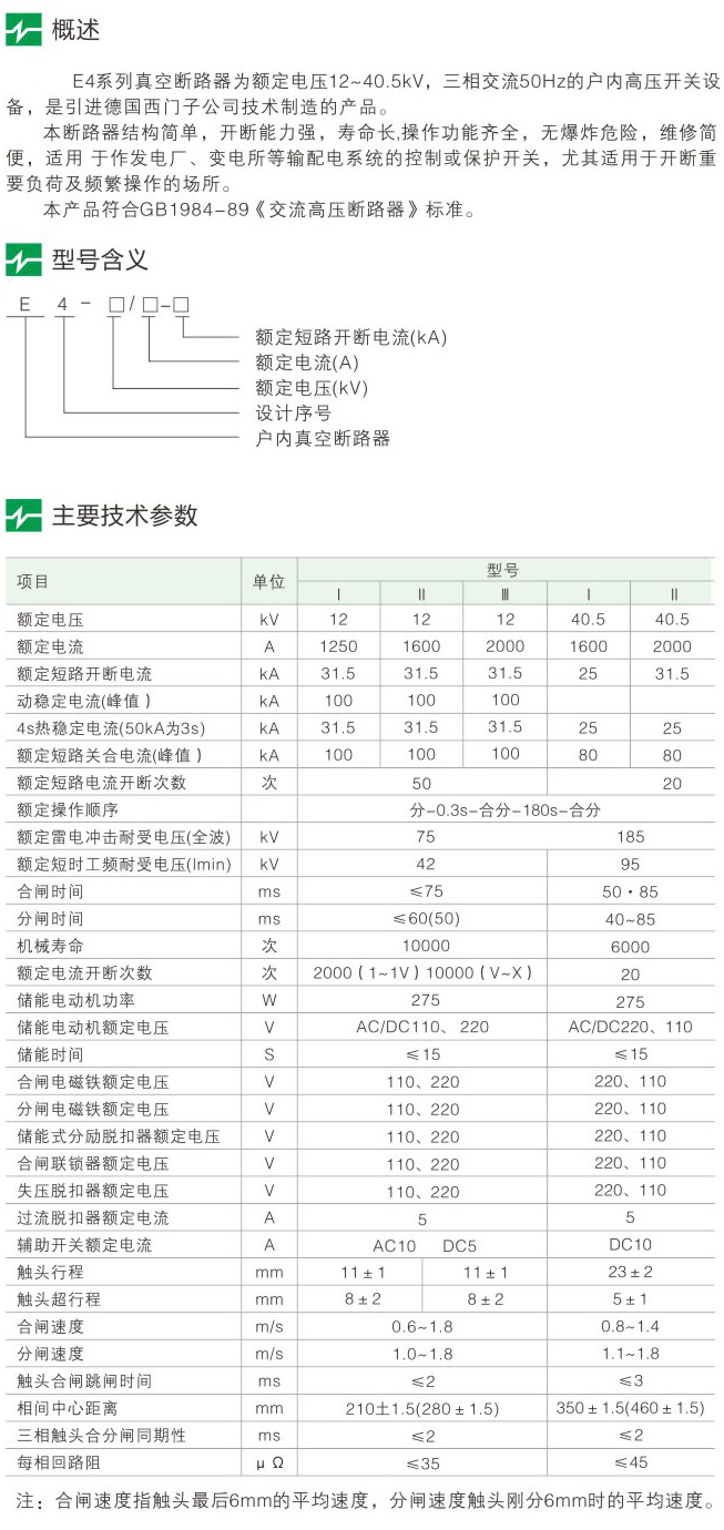E4-1240.5户内高压交流真空断路器