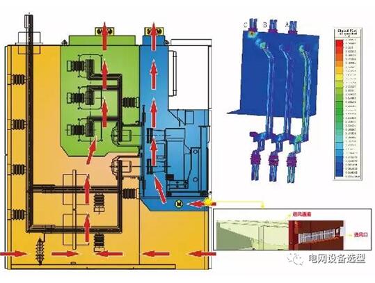 手车室、母线室、电缆室设计专用排风通道,将柜内的热气体与外部环境空气交换,从而达到一个对流散热的理想状态。